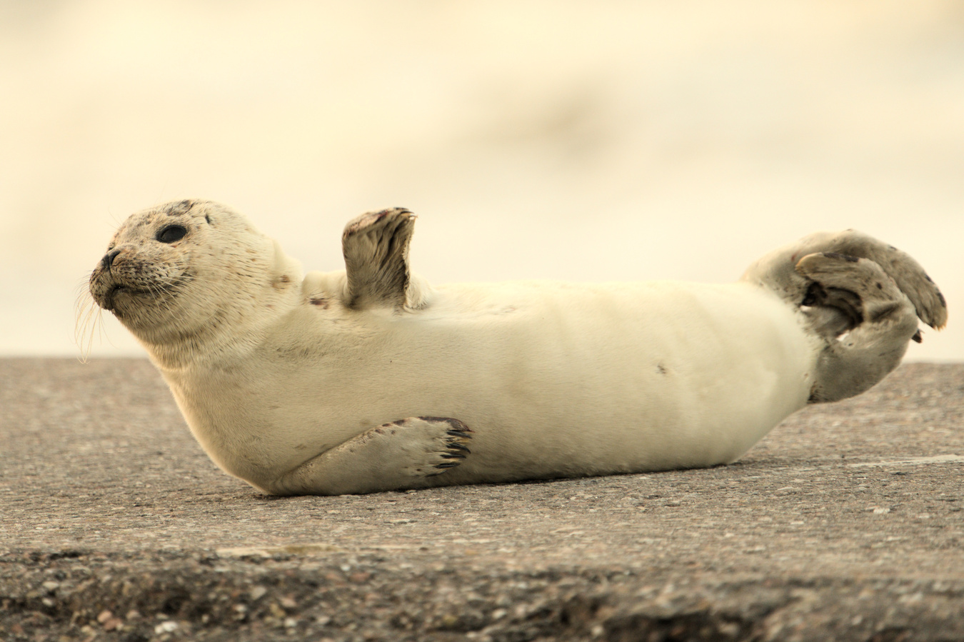 This is a harbor seal, which I photographed on Wangerooge. That was the first time I walked with my large lens on that trip, and after less than 20 minutes, I saw this seal lying on the west side. It was lying on top of the storm protection and didn't seem bothered by anyone. Several passersby walked past, and because of the narrowness of the area, there wasn't really any way to get out of its way, which did not bother it much. I sat near the animal for a while and watched it because I couldn't believe it was so easy to find these animals on the island in November.